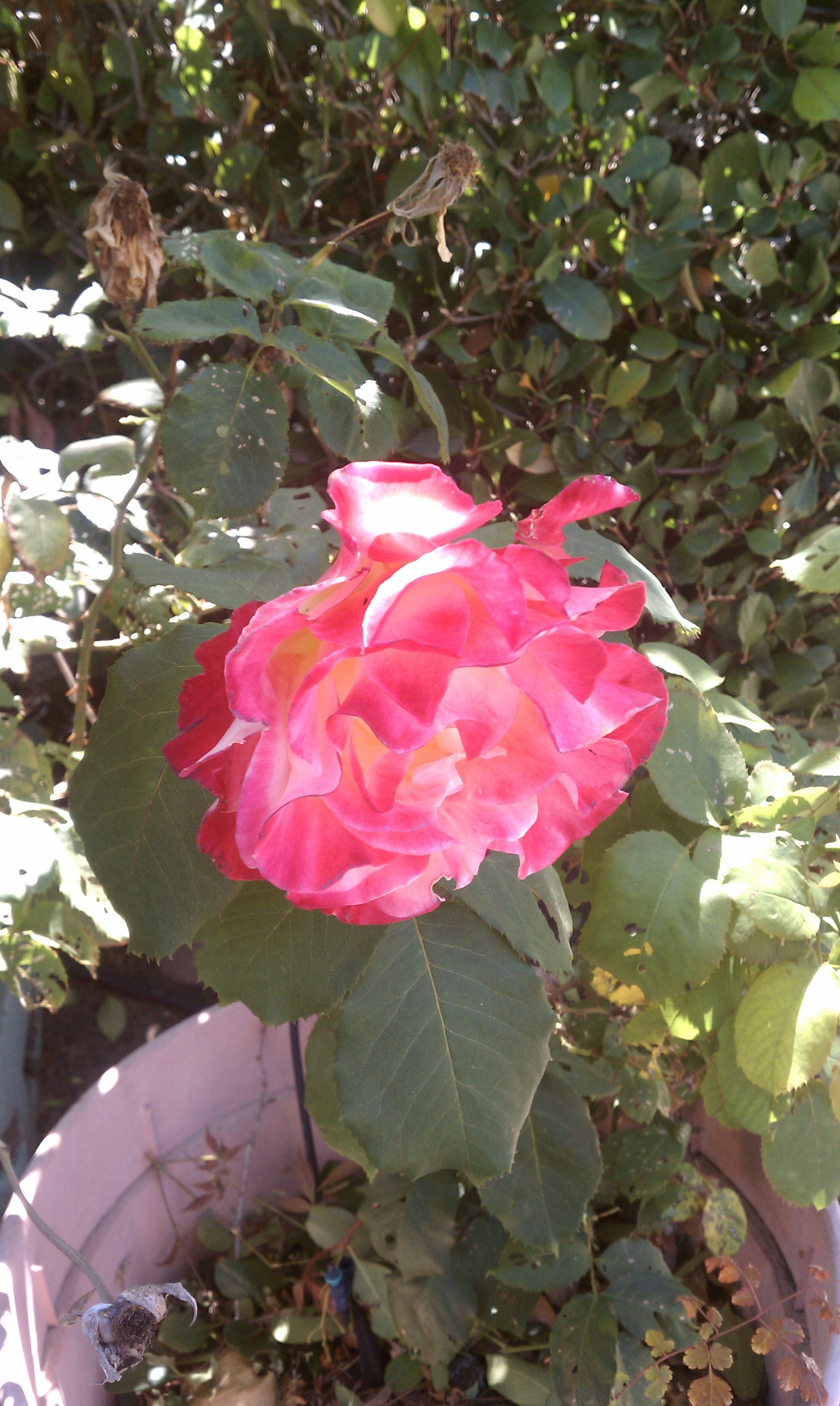 Two days later, I saw he had left it behind. No more boxes on the walk. Empty house. And the rose still blooming in its pot, but without the old man beside it. Would it survive and thrive without him?